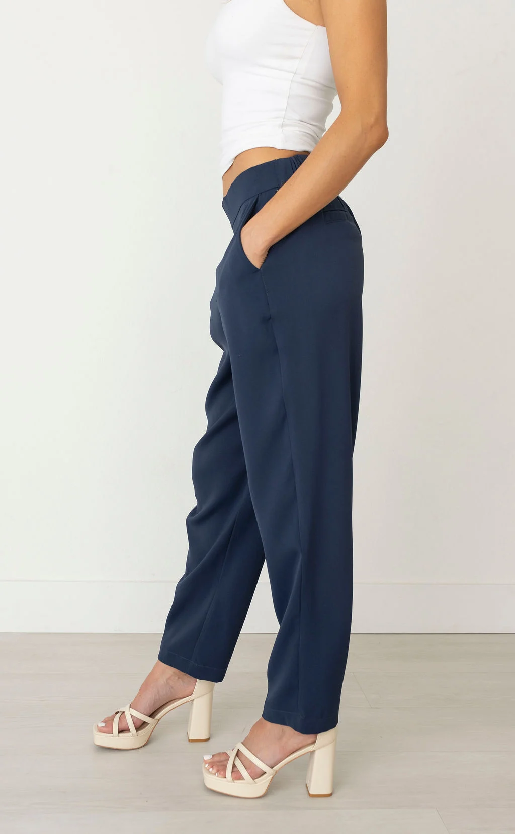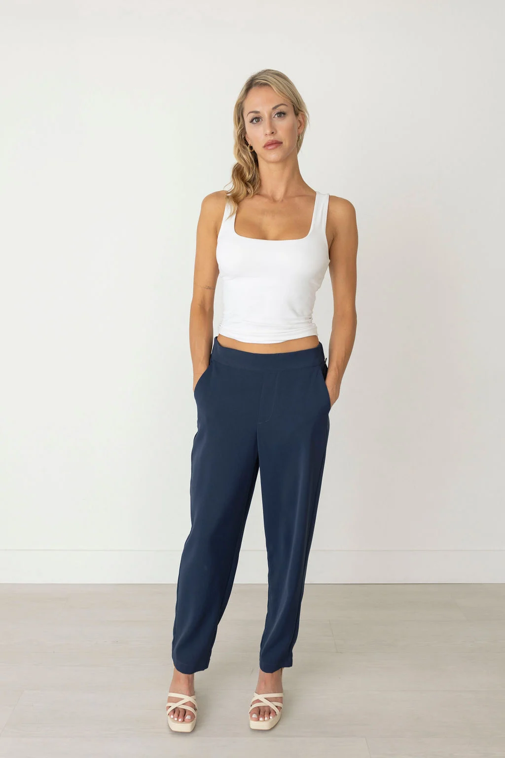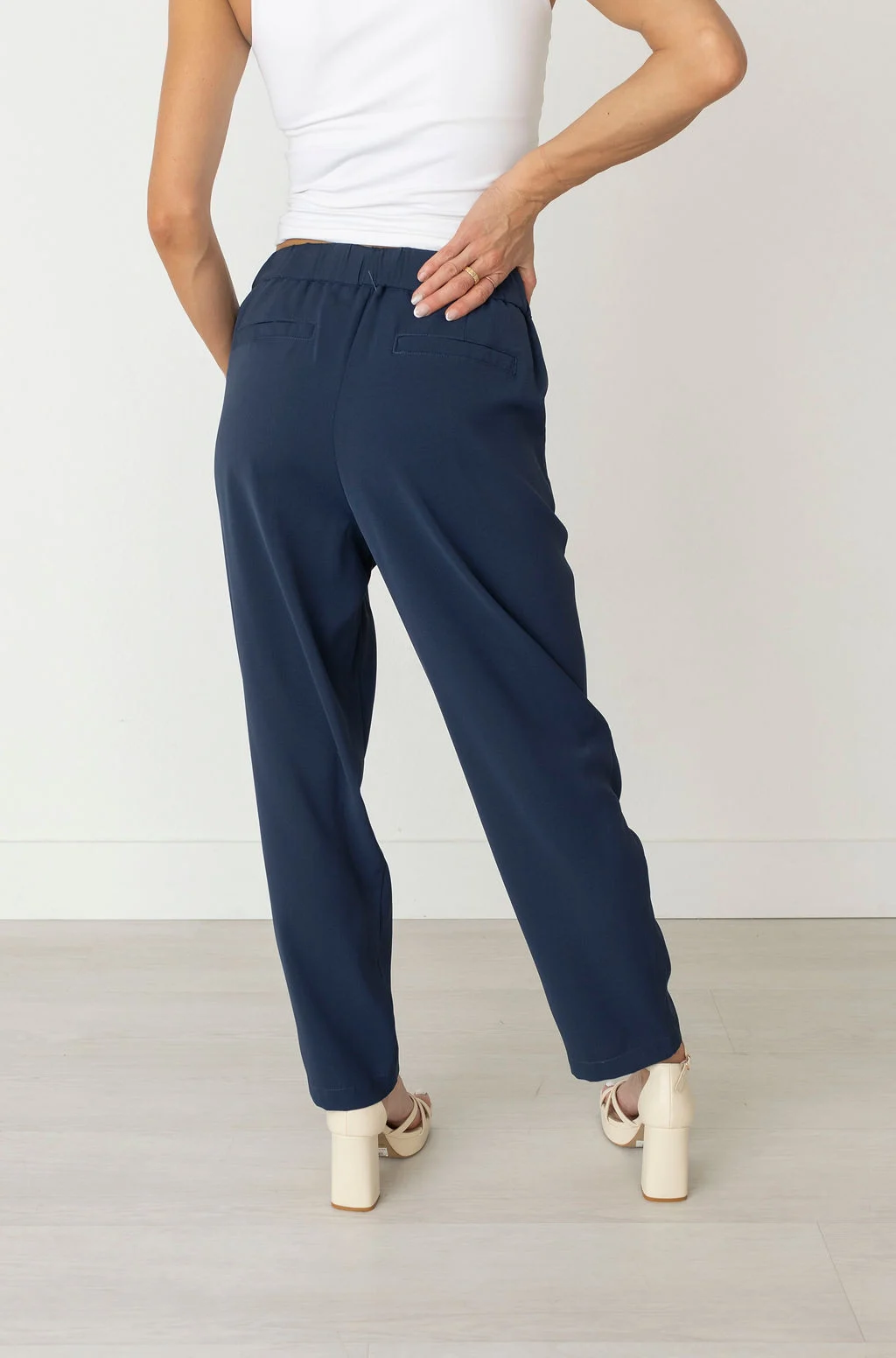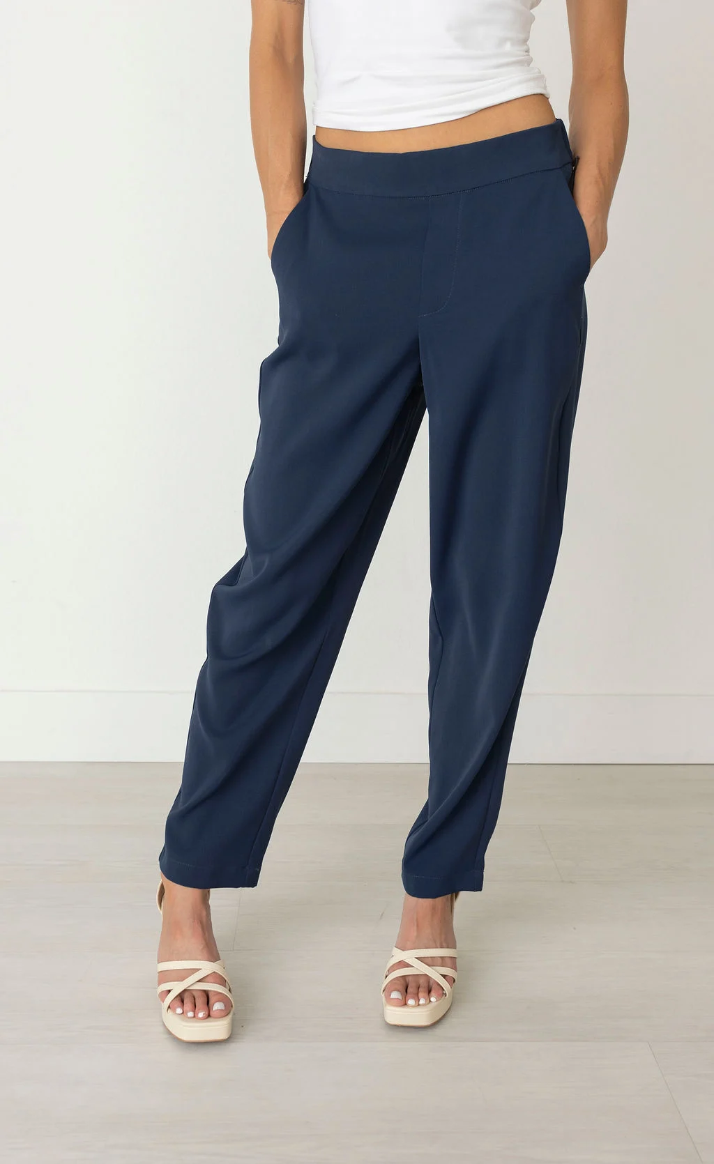 PULLON TAPPERED LEG TROUSER – ALMOST SILK FABRIC NAVY